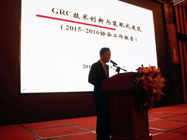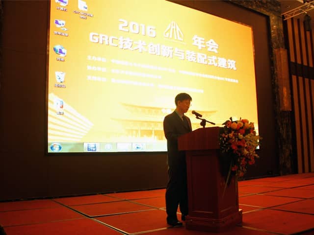 会议首先由中国混凝土与水泥制品协会沈冰副秘书长讲话, 在讲话中表示,对参加此次年会的专家学者表示感谢,总结GRC行业面对经济新常态下积极引导企业加大供给侧改革,确保行业经济稳定增长。并强调2016年作为“十三五”开局之年,应加快建筑工业化转型升级。刘敬疆处长在会议中对我国集成装配式房屋发展现状以及绿色建材评价标识进行详细的介绍。崔琪院长在会议中对2015-2016协会做详细工作汇报。并对GRC行业所面对传统制造行业问题以及下一步发展战略做了重点介绍。天意机械销售经理秦艳慧在会中对GRC墙板在装配式建筑中的应用做了详细的技术汇报。本次年会将围绕“GRC 技术创新与装配式建筑”主题交流?;嶂懈鞑位岽矸直鸲訥RC行业技术创新及应用发表各自的见解。