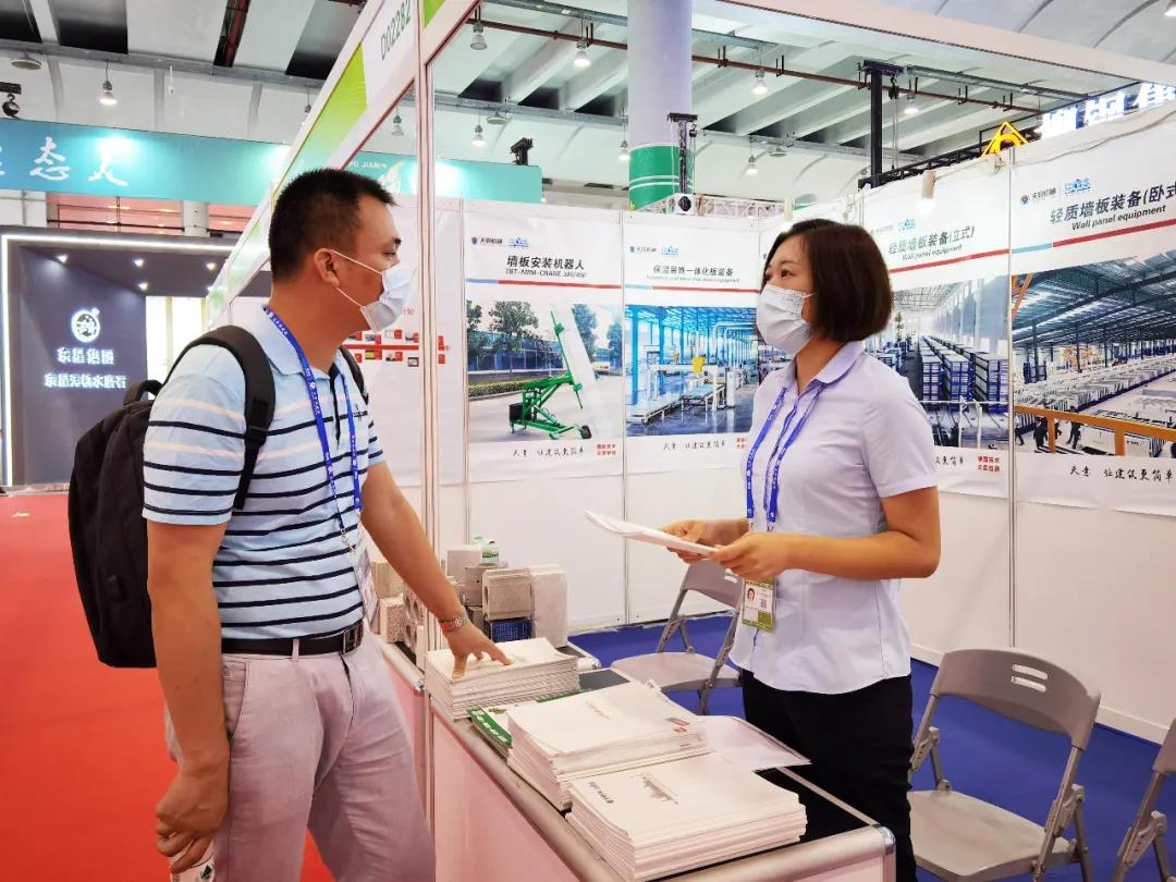 天意机械作为一家数字科技驱动的建筑工业化平台,携装配式建筑成套智能装备(墙板装备、PC装备、ALC装备、保温装饰一体化板生产装备)参展。在展区内受到众多商家和游客的关注。为更好地展示企业的科研实力与优秀产品,天意机械相关工作人员精心筹备参展事宜,充分利用此次东博会的契机让广西、东盟等市场了解到天意的定制化装配式建筑智能装备和服务。