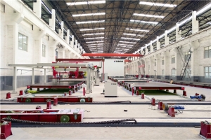 PC构件生产流水线采用现代工业做法,工作模台流转作业,实现住宅预制构件批量生产,将传统现浇工地大量立体分散的工作,转移至工厂,大幅提高了功效,同时大量节省人工。
