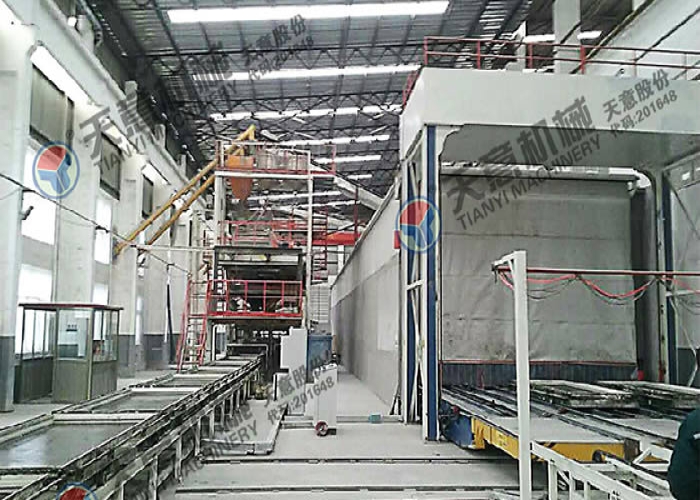 • 多功能墙板生产线,可生产“三明治”夹芯板,钢边框屋面板、楼面板,不带面板复合板。生产线主要分为自动配料系统、搅拌系统、发泡系统、中央控制配电系统、轻质混凝土布料系统、磨光系统、模具循环系统、养护系统、码垛系统等部分组成。