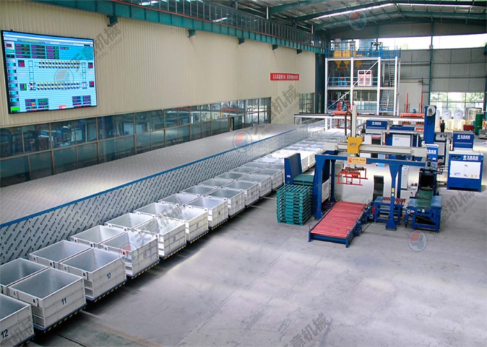 水泥发泡保温板生产线是我公司顺应市场需求新研发的成套设备。该生产线将工艺流程划分为搅拌系统、循环浇注系统、脱模系统、切割系统、包装系统、储存系统、废料破碎回收系统,全套生产线可实现班产量400—600m3,全部利用自动控制生产流程,所需人工9—12人,大大降低生产成本.